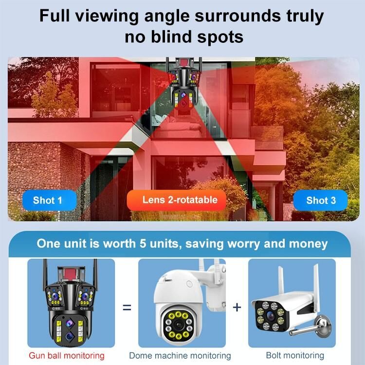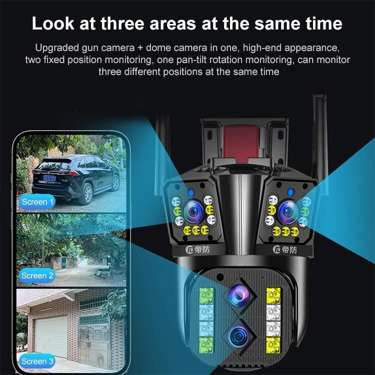 1. Υιοθετεί έναν συνδυασμό κάμερας τύπου όπλου και θολωτής κάμερας, τέσσερις φακούς και τρεις εικόνες, που μπορούν να παρακολουθούν τρεις διαφορετικές θέσεις σε πανοραμική θέα 360 μοιρών, εύκολο στη χρήση.