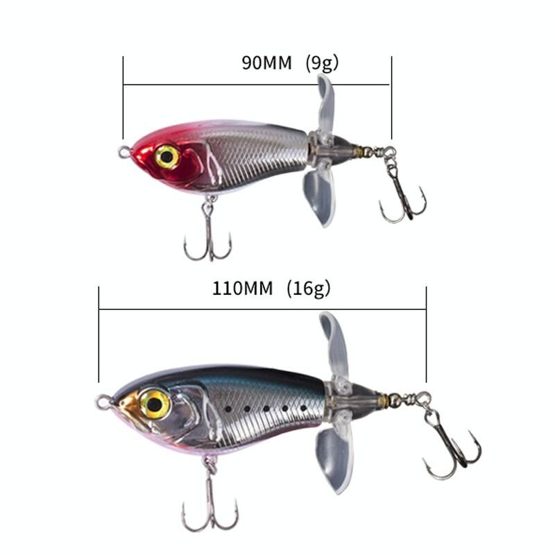 2. Η προπέλα κάνει έναν παφλασμό, ενώ οι λεπίδες περιστρέφονται και συγκρούονται με το νερό για να προσελκύσουν τα ψάρια στο αγκίστρι