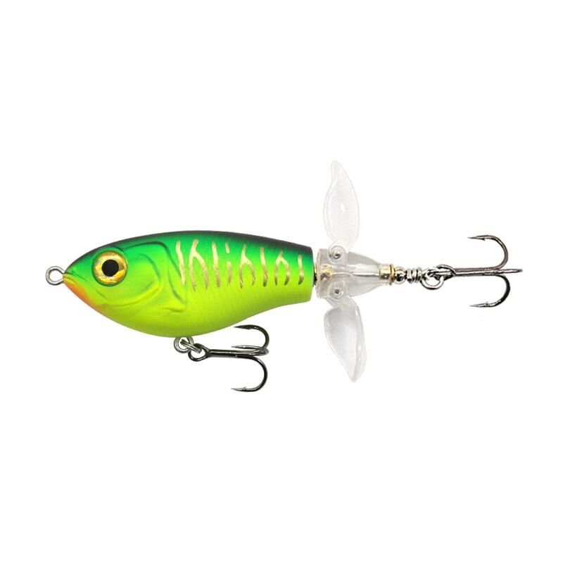 2. Η προπέλα κάνει έναν παφλασμό, ενώ οι λεπίδες περιστρέφονται και συγκρούονται με το νερό για να προσελκύσουν τα ψάρια στο αγκίστρι