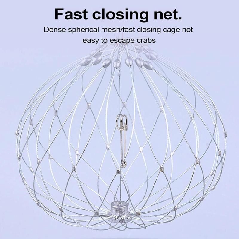2. Το δίχτυ γίνεται γρήγορα σφαιρικό, με πυκνές τρύπες πλέγματος, και το κλουβί κλείνει γρήγορα για να αποτρέψει τη διαφυγή των καβουριών.