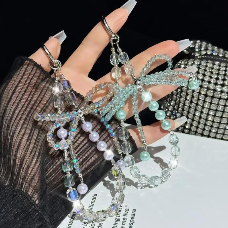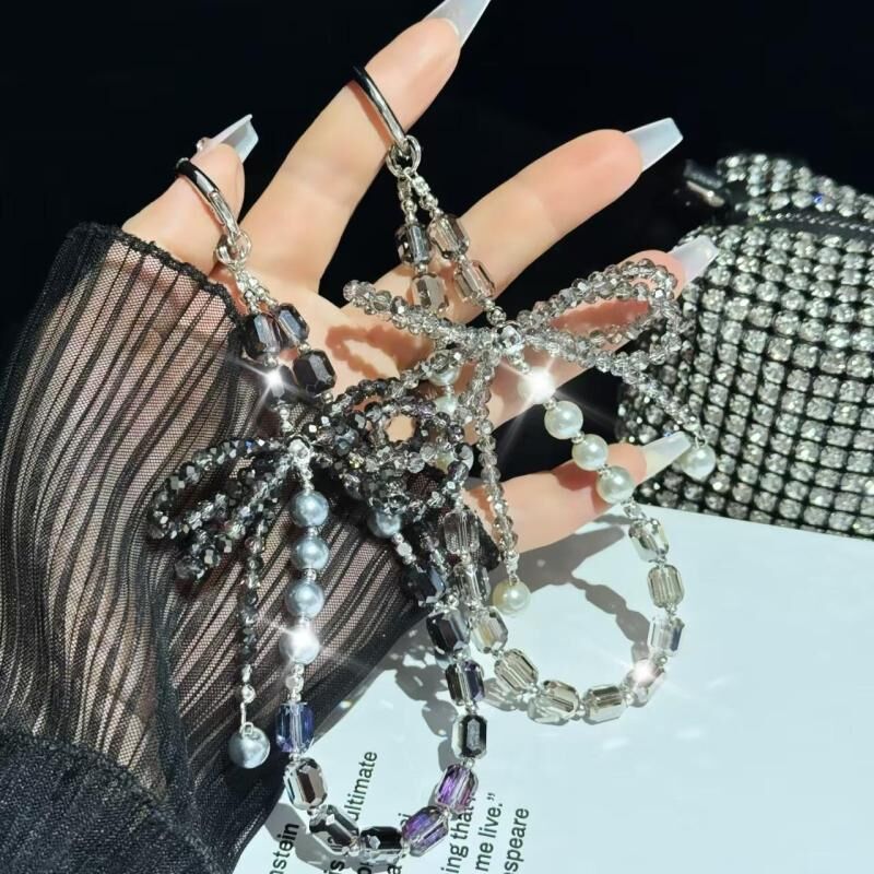 Diamond Crystal Bow Crystal Pearl Phone Chain(Purple)