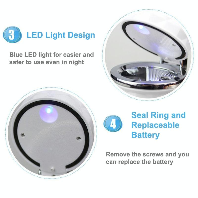 2. This ashtray has an extremely bright LED light that activates when the lid is opened.