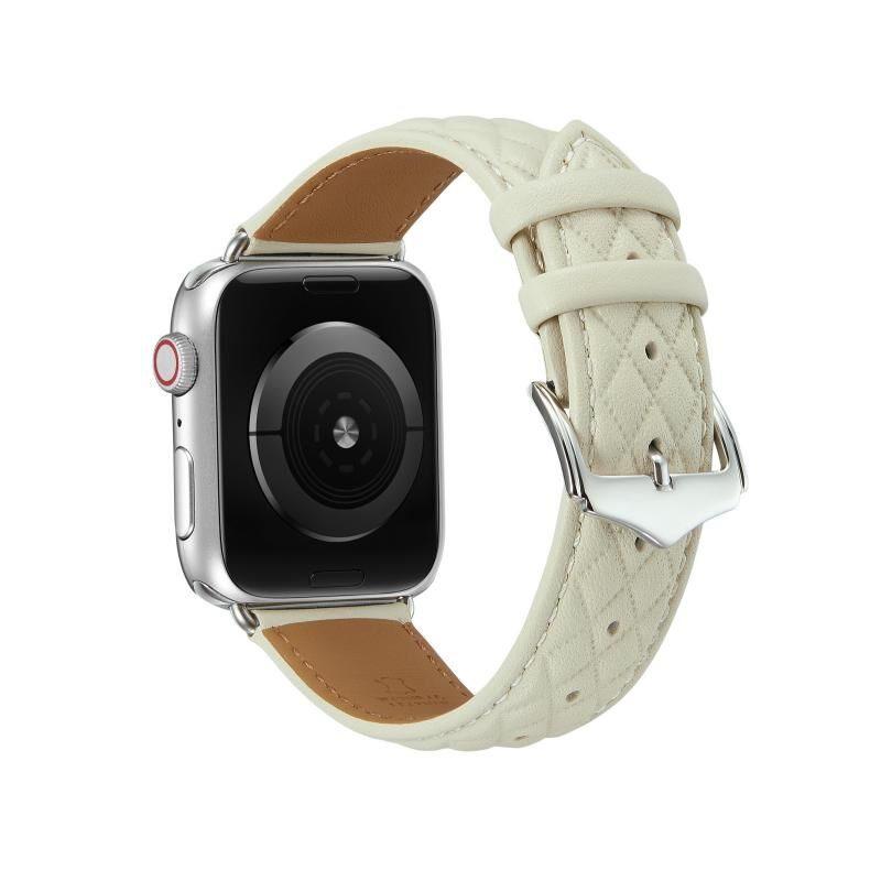 Λουρί ρολογιού από γνήσιο δέρμα με σχέδιο διαμαντιού για Apple Watch Series 9&8&7 41mm / SE 3&SE 2&6&SE&5&4 40mm / 3&2&1 38mm (Μπεζ)