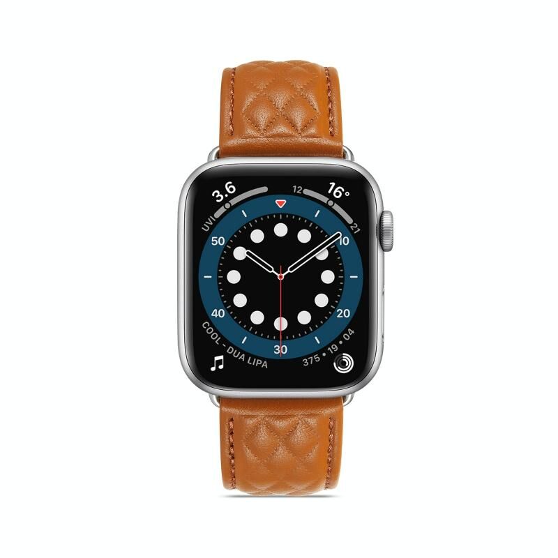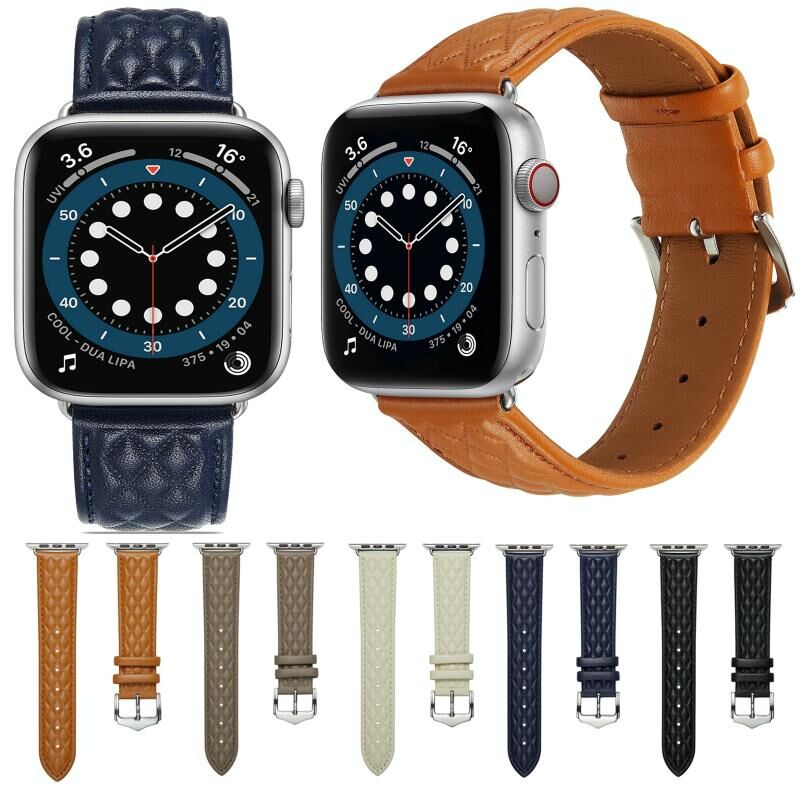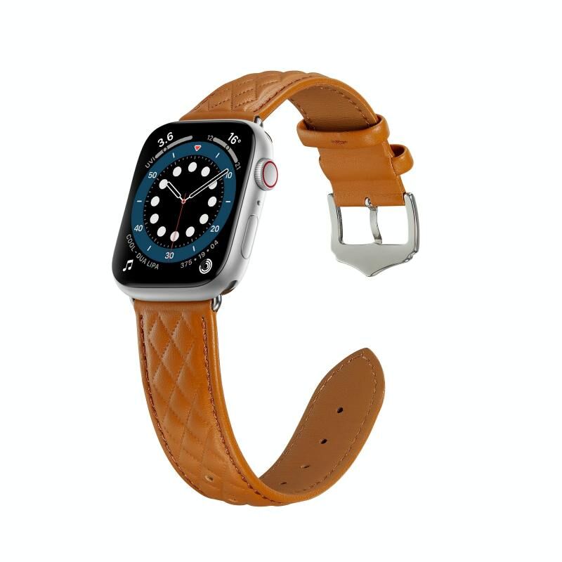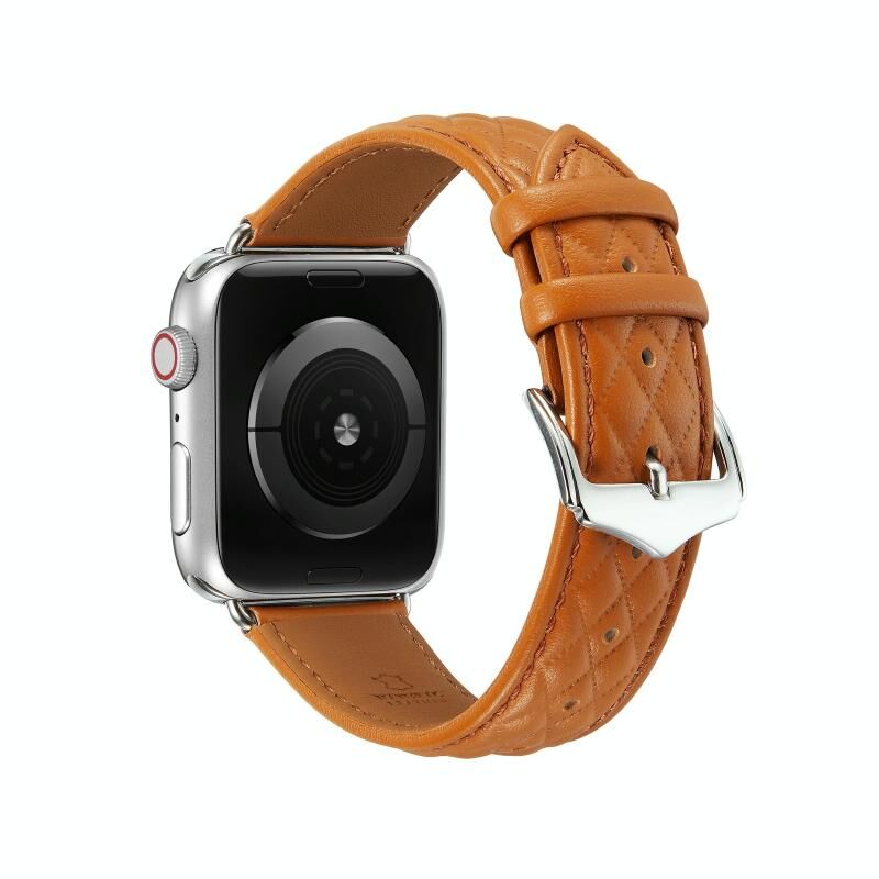 Diamond Lattice Genuine Leather Watch Band for Apple Watch Series 9&8&7 41mm / SE 3&SE 2&6&SE&5&4 40mm / 3&2&1 38mm(Brown)