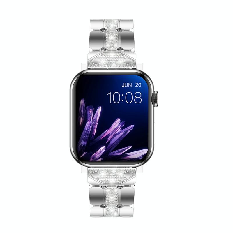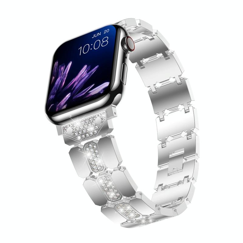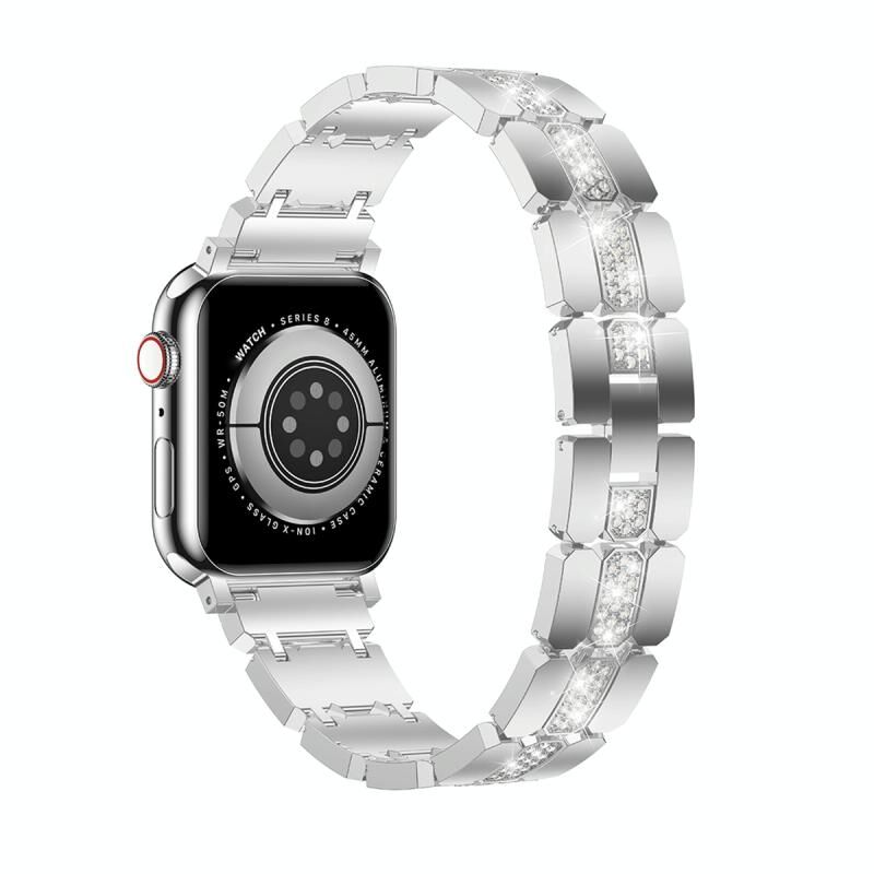 Μπρασλέ για Apple Watch 5 44mm (Ασημί) από μέταλλο με διαμάντια (Ασημί)