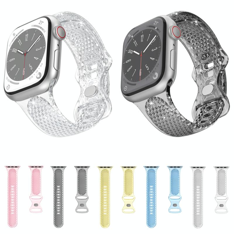 Λουράκι ρολογιού από διαφανές TPU με σχέδιο διαμαντιών για Apple Watch Series 9&8&7 41mm / SE 3&SE 2&6&SE&5&4 40mm / 3&2&1 38mm (Κίτρινο)