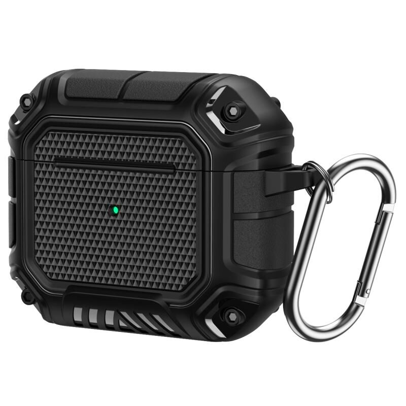 Diamond Shield Mecha TPU + PC Earphone Protective Case with Hook for AirPods 3(Black)