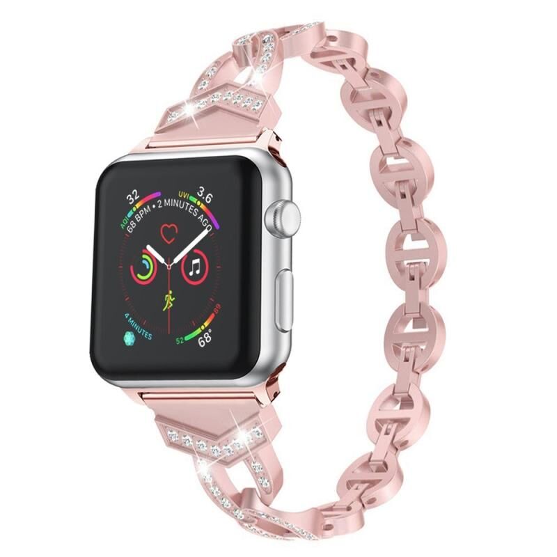 Λουρί ρολογιού από ανοξείδωτο ατσάλι με διαμάντια για Apple Watch Series 9&8&7 41mm / SE 3&SE 2&6&SE&5&4 40mm / 3&2&1 38mm (Ροζ χρυσός)