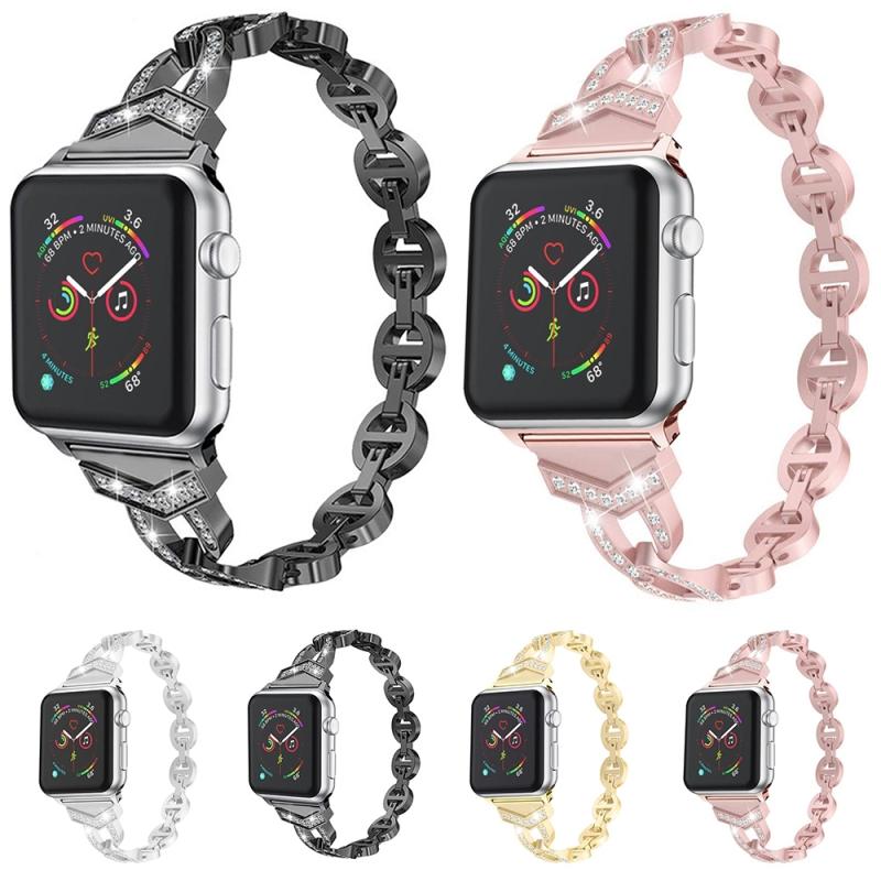 Diamond Stainless Steel Watch Band For Apple Watch Ultra 49mm&Watch Ultra 2 49mm / Series 9&8&7 45mm / SE 3&SE 2&6&SE&5&4 44mm / 3&2&1 42mm(Rose Gold)
