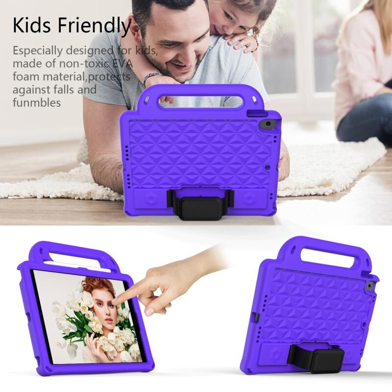 Θήκη προστασίας με υφή διαμαντιού από EVA για παιδιά, ανθεκτική σε κρούσεις, με λουρί για iPad 10.2 2021 / 2020 / 2019 / Pro 10.5 (Πράσινο+Μαύρο)