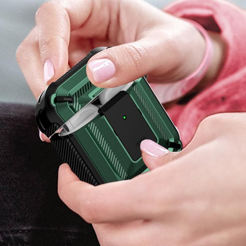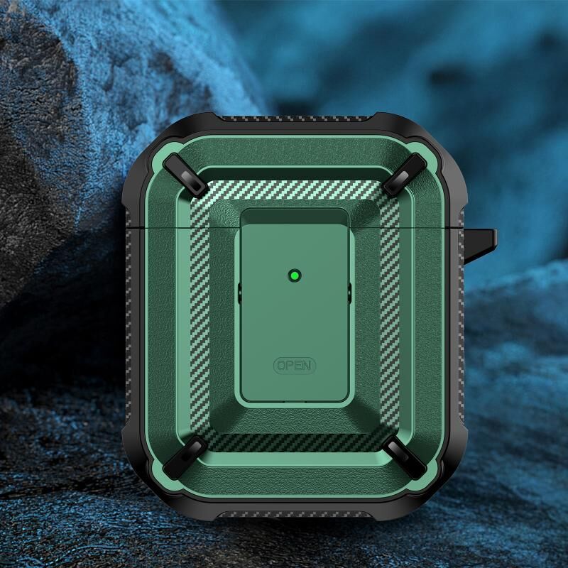 Θήκη προστασίας ακουστικών με υφή διαμαντιού, με διακόπτη & άγκιστρο για AirPods 1 / 2 (Βασιλικό Μπλε + Μαύρο)