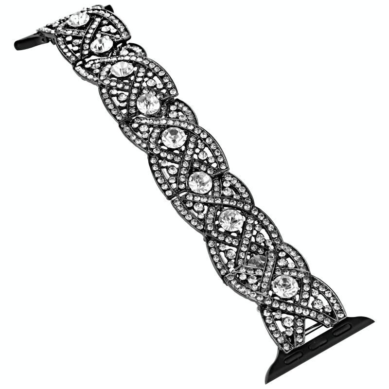 Λουράκι ρολογιού για Apple Watch 4 44mm (Μαύρο) με διαμάντια και μεταλλική πλέξη. (Μαύρο)