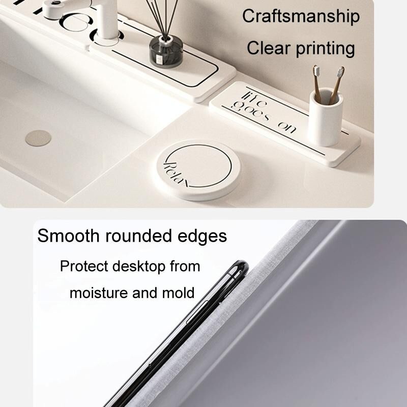 1. Υλικό: διατομίτης 2. Κατασκευασμένο από μη τοξικό διατομίτη, ασφαλές και φιλικό προς το περιβάλλον, ανθεκτικό και μακράς διαρκείας 3. Ισχυρή απορροφητικότητα και γρήγορο στέγνωμα, εύκολη εξάτμιση, διατηρεί τον πάγκο στεγνό και καθαρό συνεχώς 4. Αντιολισθητικό κάτω μέρος, εύκολη αποθήκευση, εύκολος καθαρισμός με νερό ή υγρό πανί 5. Ευρεία γκάμα εφαρμογών, κατάλληλο για σαπούνι, κούπες, μπουκάλια σαπουνιού, σφουγγάρια πιάτων, λοσιόν και άλλα απορροφητικά υποστρώματα 6. Μέγεθος: περίπου 22,5x7cm, 10 x 10cm 7. Περιγραφή: παράδοση μόνο απορροφητικών υποστρωμάτων, δεν περιλαμβάνει άλλα Σημειώσεις: 1. Λόγω χειροκίνητης μέτρησης, τα δεδομένα μεγέθους ενδέχεται να έχουν σφάλμα 1-2 cm 2. Λόγω διαφορετικών εφέ φωτισμού και οθόνης, ενδέχεται να υπάρχει μια μικρή χρωματική διαφορά
