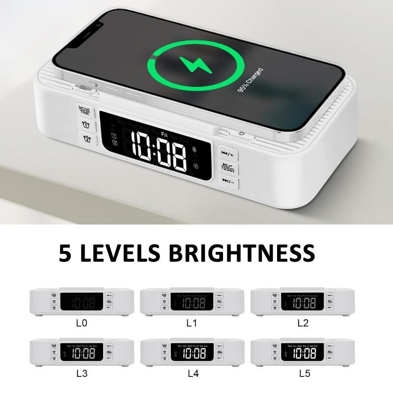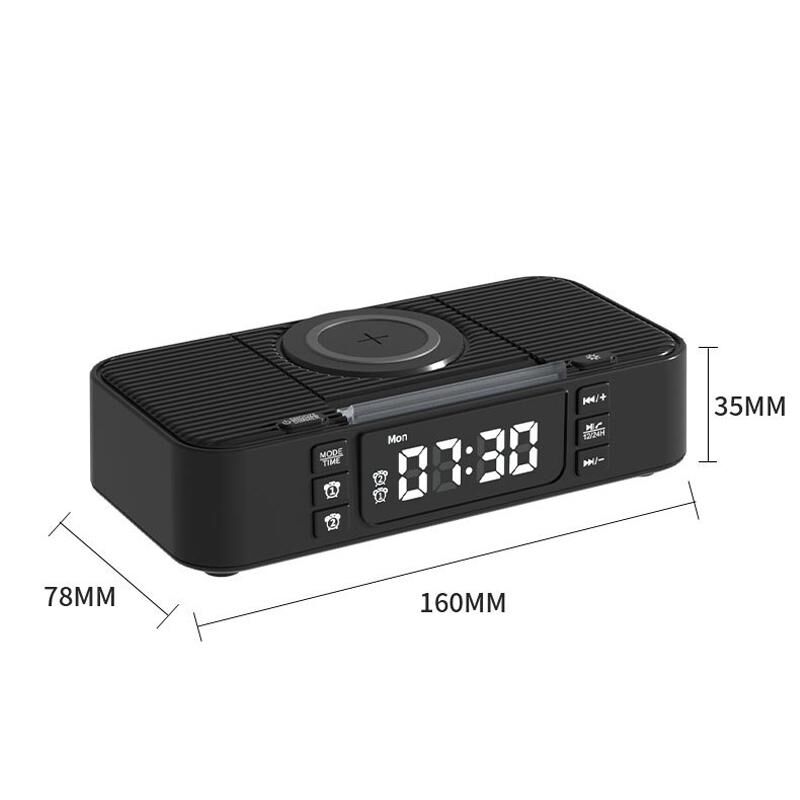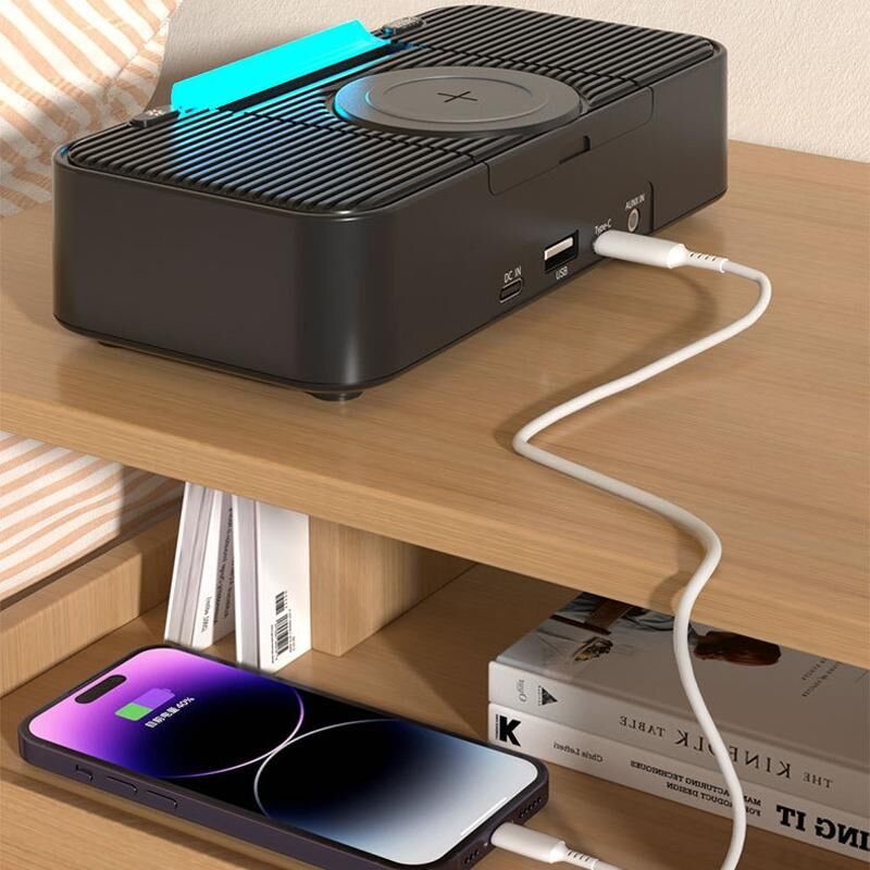 7. In addition to being equipped with a wireless charging module, the alarm clock also has 1 USB Type C + 1 USB A charging output port, which can charge multiple electronic devices at the same time.
