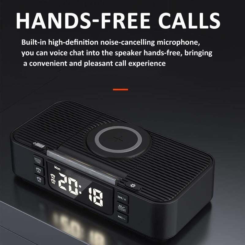7. Εκτός από την ενσωματωμένη μονάδα ασύρματης φόρτισης, το ξυπνητήρι διαθέτει επίσης 1 θύρα εξόδου φόρτισης USB Type C + 1 USB A, η οποία μπορεί να φορτίσει πολλές ηλεκτρονικές συσκευές ταυτόχρονα.