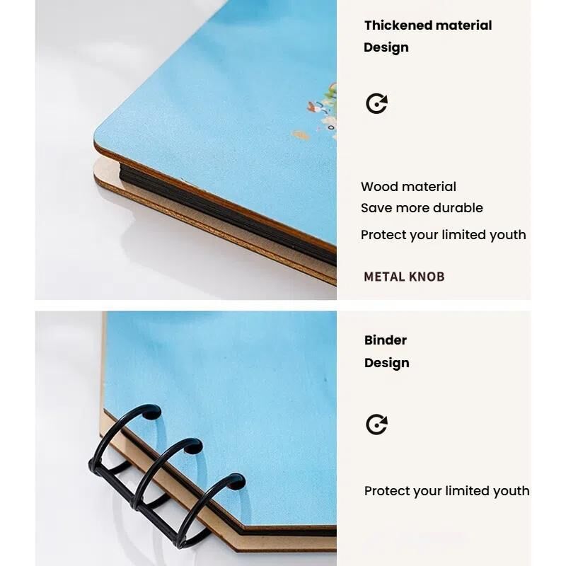 DIY Wooden Square Memorial Album Kids Growth Photo Album Cartoon Photo Book(Forever Love)
