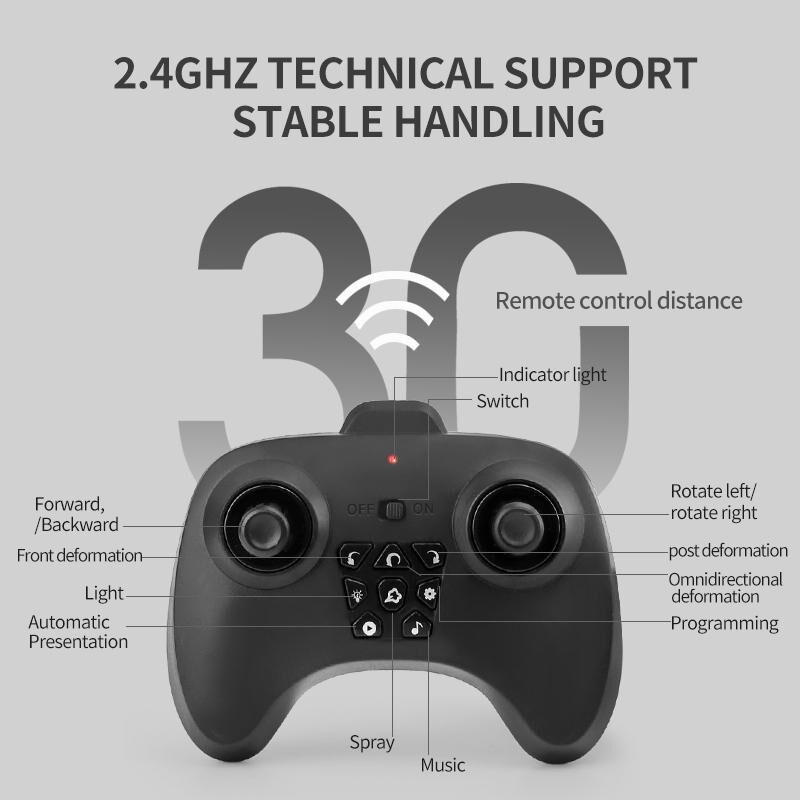 9. Μπορεί να κινηθεί προς τα εμπρός, προς τα πίσω, με κλίση 45°, περιστροφή 360°, τετρακίνηση, ψεκασμός και μεταμόρφωση του βραχίονα.