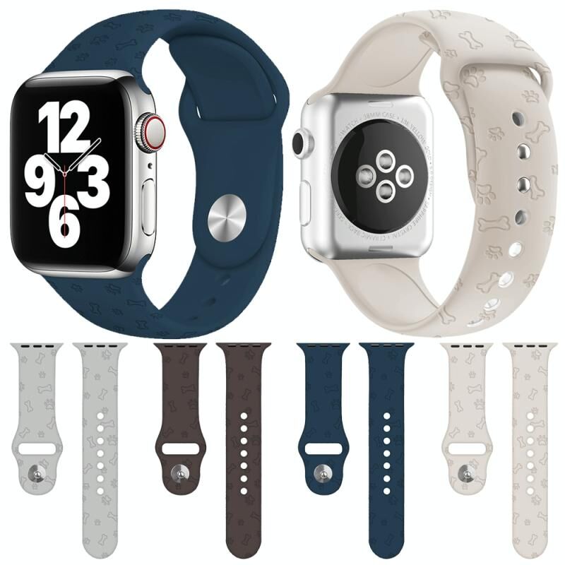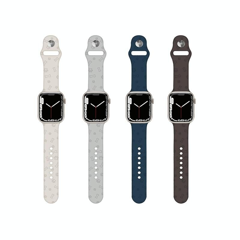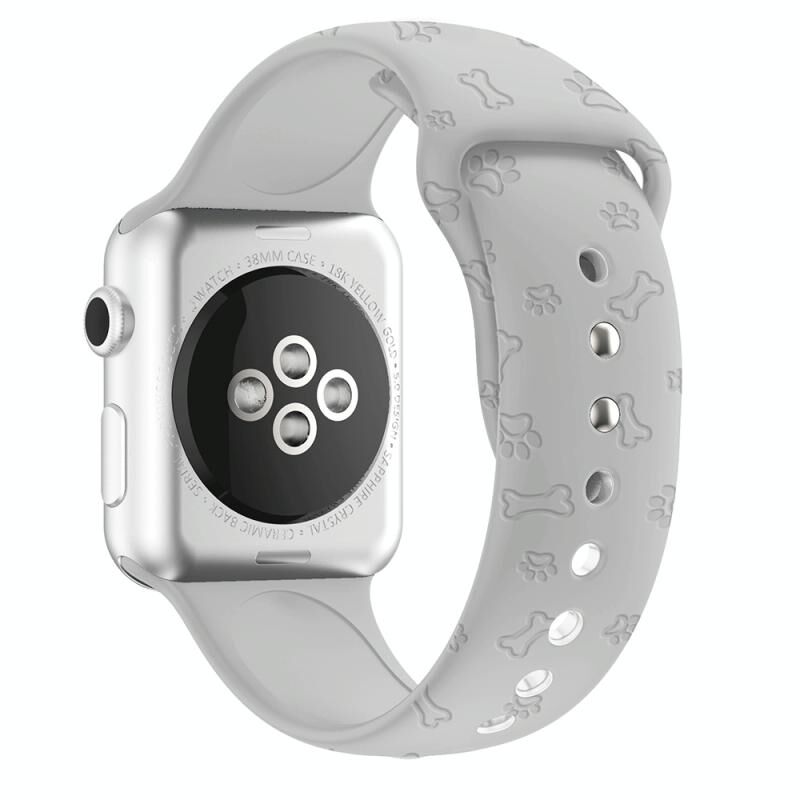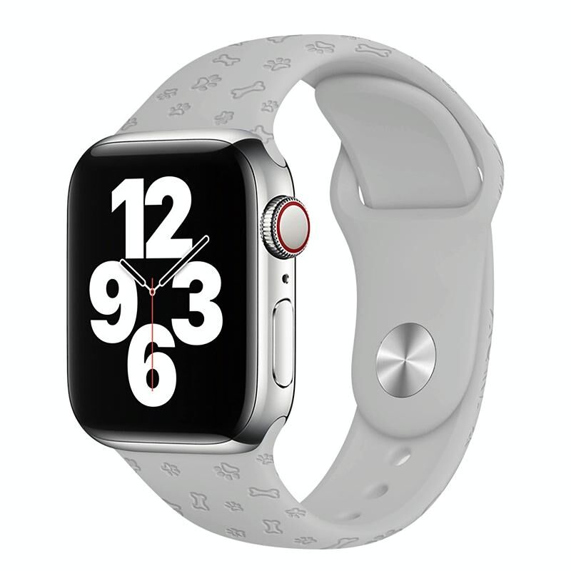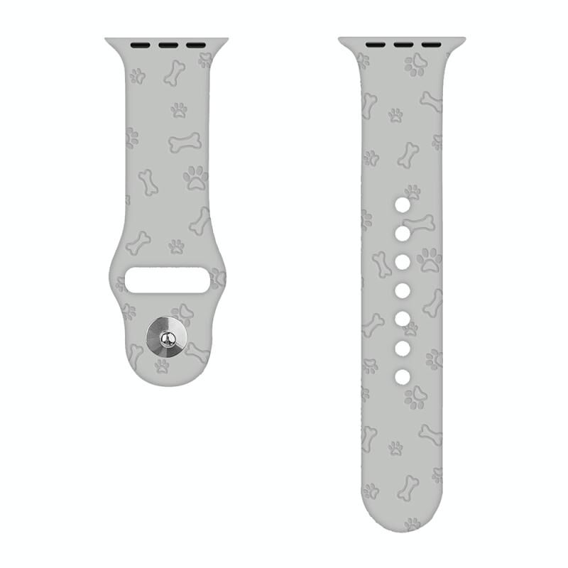 Λουρί Σιλικόνης για Apple Watch Ultra 49mm & Watch Ultra 2 49mm / Series 9 & 8 & 7 45mm / SE 3 & SE 2 & 6 & SE & 5 & 4 44mm / 3 & 2 & 1 42mm με ανάγλυφο αποτύπωμα πατούσας σκύλου (Ανοιχτό Γκρι)