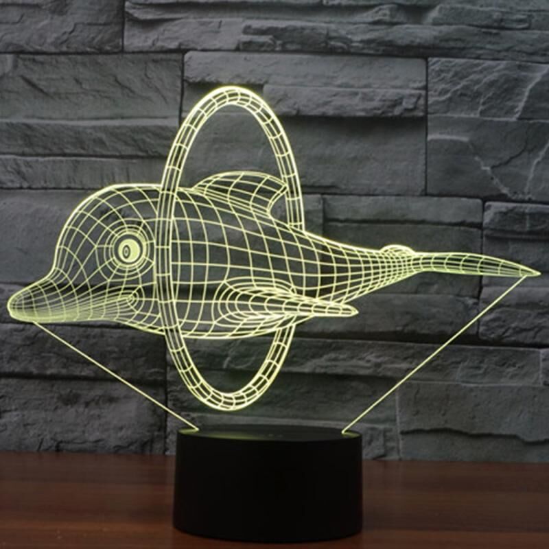 Στυλ άλματος δελφινιού 3D Touch Switch Control LED Light , 7 χρώματα αποχρωματισμού Δημιουργική οπτική στερεοφωνική λάμπα φωτιστικό γραφείου νυχτερινό φως