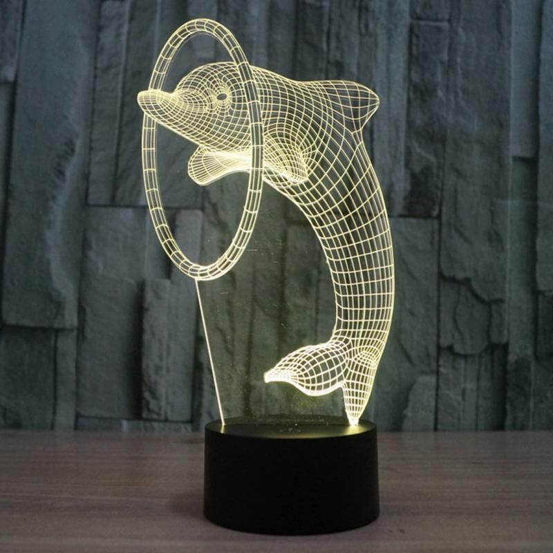 Στυλ δελφινιού 3D Touch Switch Control LED Light , 7 χρώματα αποχρωματισμού Δημιουργική οπτική στερεοφωνική λάμπα φωτιστικό γραφείου νυχτερινό φως