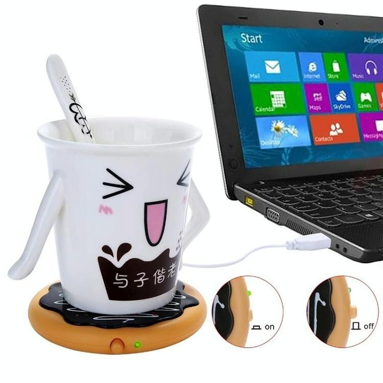 4. Λειτουργία με ένα κουμπί, ακολουθήστε απλά 3 βήματα, πρώτα συνδέστε το καλώδιο USB στον υπολογιστή σας ή σε οποιαδήποτε θύρα USB, προκειμένου να λάβετε πόρους ενέργειας. Στη συνέχεια, τοποθετήστε το κρύο φλιτζάνι σας στο θερμαντικό χαλί. Τέλος, πατήστε το κουμπί ON για να διατηρήσετε το φλιτζάνι ζεστό και να απολαύσετε τα ζεστά σας ροφήματα.