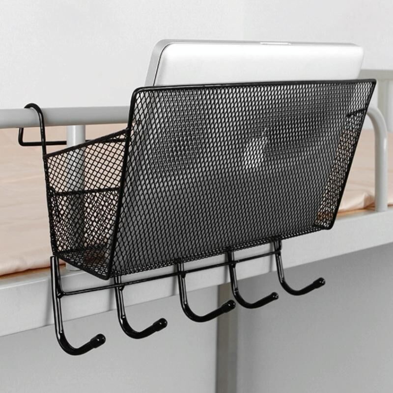 Κοιτώνας Upper Bunk Bedside Storage Rack Bedside κρεμαστό καλάθι γάντζο (μαύρο κρεμαστό καλάθι + μαύρο γάντζο)