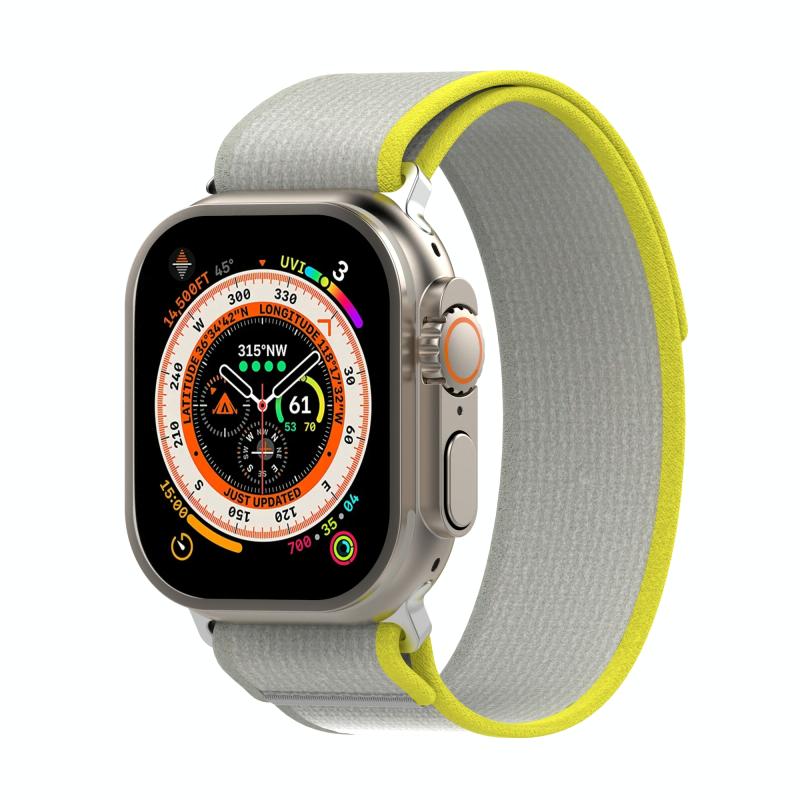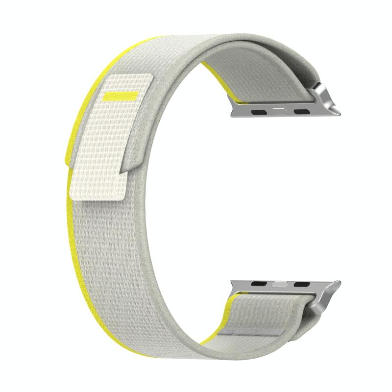 Double Color Nylon Hook and Loop Fastener Watch Band For Apple Watch Series 8&7 45mm / SE 2&6&SE&5&4 44mm / 3&2&1 42mm(Yellow+Beige)