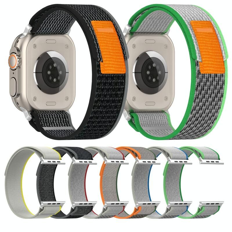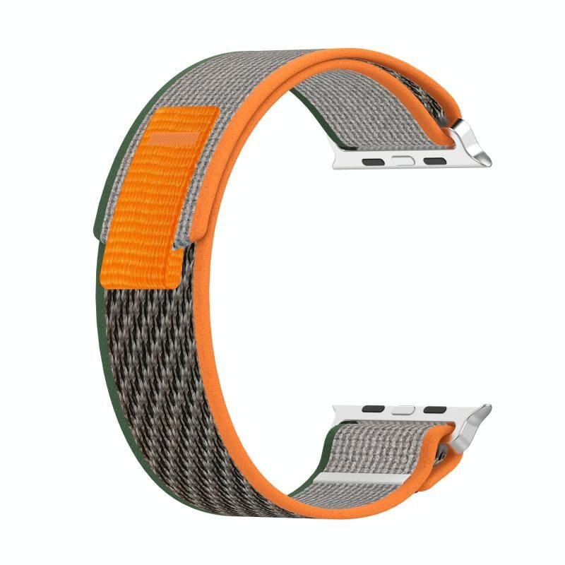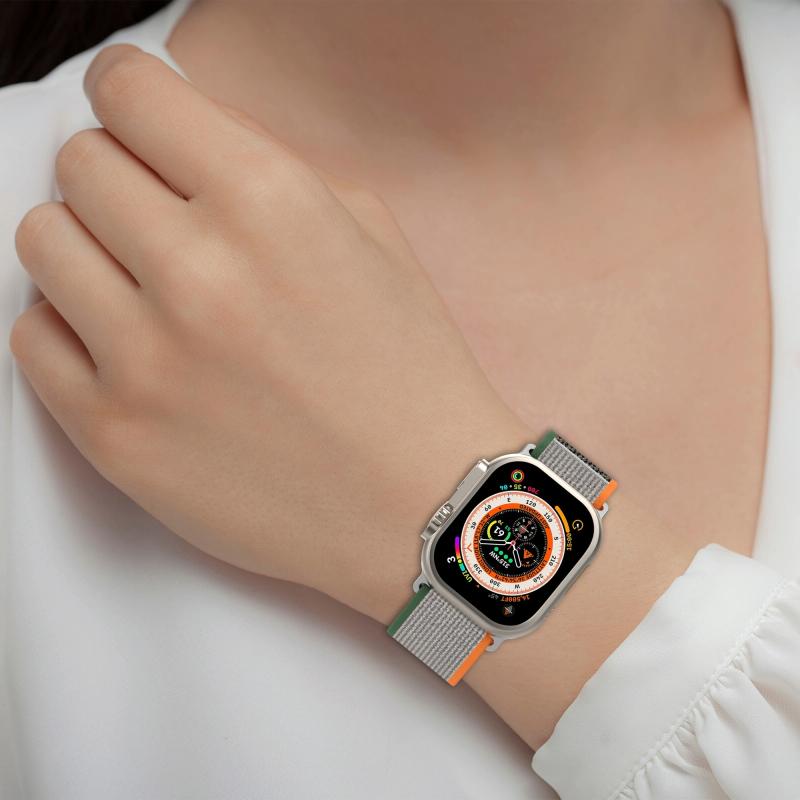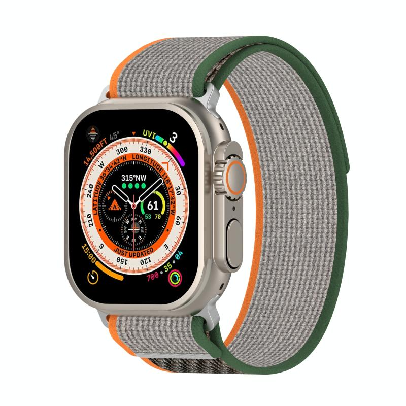 Double Color Nylon Hook and Loop Fastener Watch Band For Apple Watch Ultra 49mm(Orange+Army green)