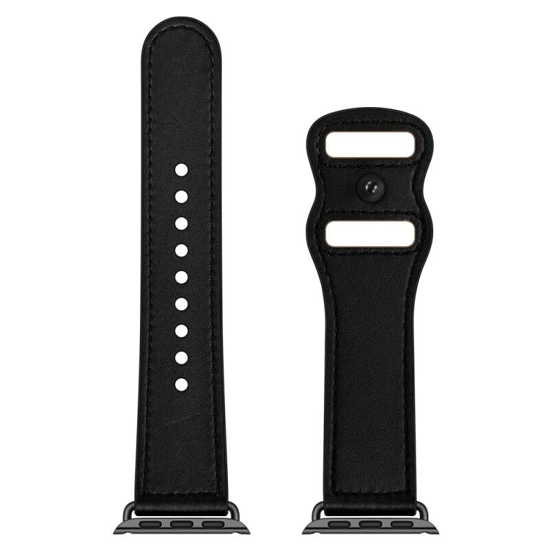 Δερμάτινο Λουράκι Ρολογιού Διπλής Οπής για Apple Watch Series 7 41mm / 6 & SE & 5 & 4 40mm / 3 & 2 & 1 38mm (Μαύρο)