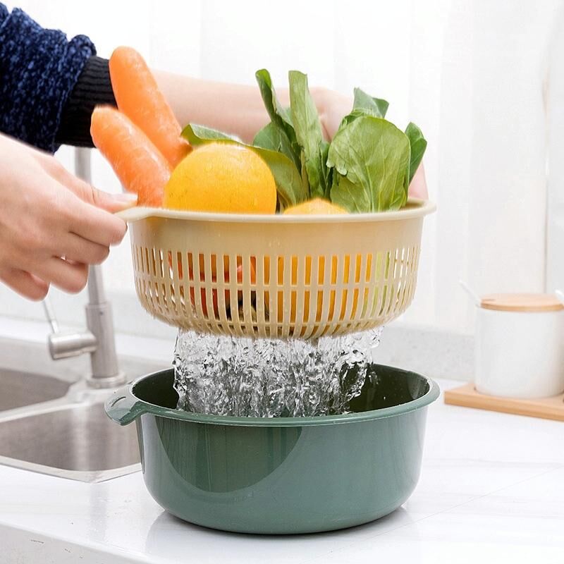 Διπλής στρώσης κοίλο καλάθι αποστράγγισης φρούτων και λαχανικών οικιακό πλαστικό καλάθι πλύσης λαχανικών, μέγεθος: μικρό (πράσινο)