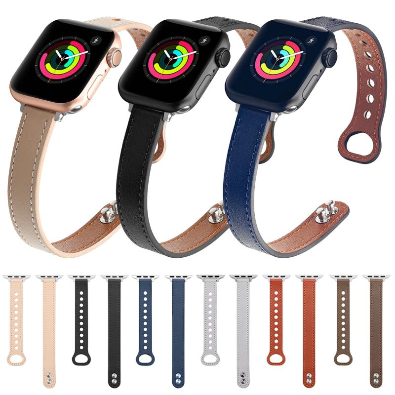 Λουρί ρολογιού από δέρμα με διπλό καρφί για Apple Watch Series 7 41mm / 6 & SE & 5 & 4 40mm / 3 & 2 & 1 38mm (Μπλε)