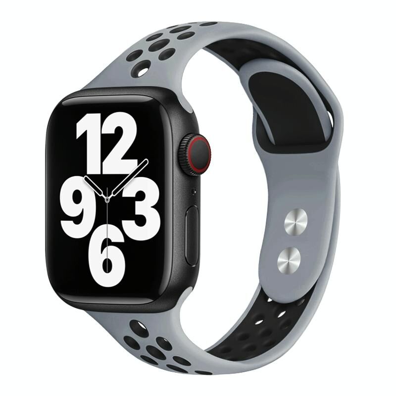 Double Nail Small Waist Watch Band For Apple Watch Series 9&8&7 41mm / SE 3&SE 2&6&SE&5&4 40mm / 3&2&1 38mm(Grey Black)