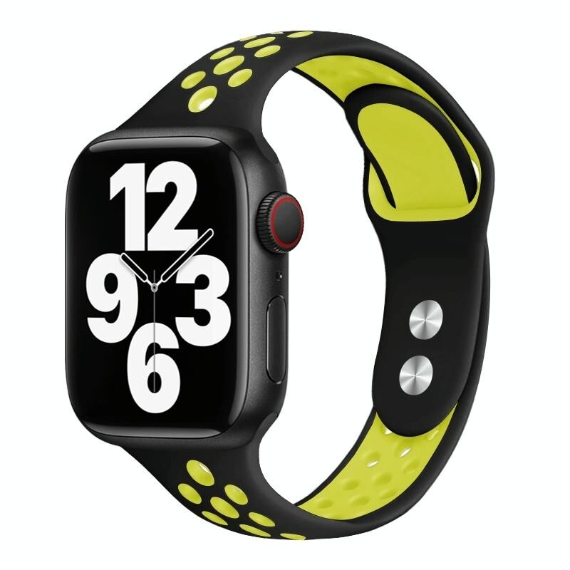 Double Nail Small Waist Watch Band For Apple Watch Ultra 49mm&Watch Ultra 2 49mm / Series 9&8&7 45mm / SE 3&SE 2&6&SE&5&4 44mm / 3&2&1 42mm(Black Fluorescent Yellow)