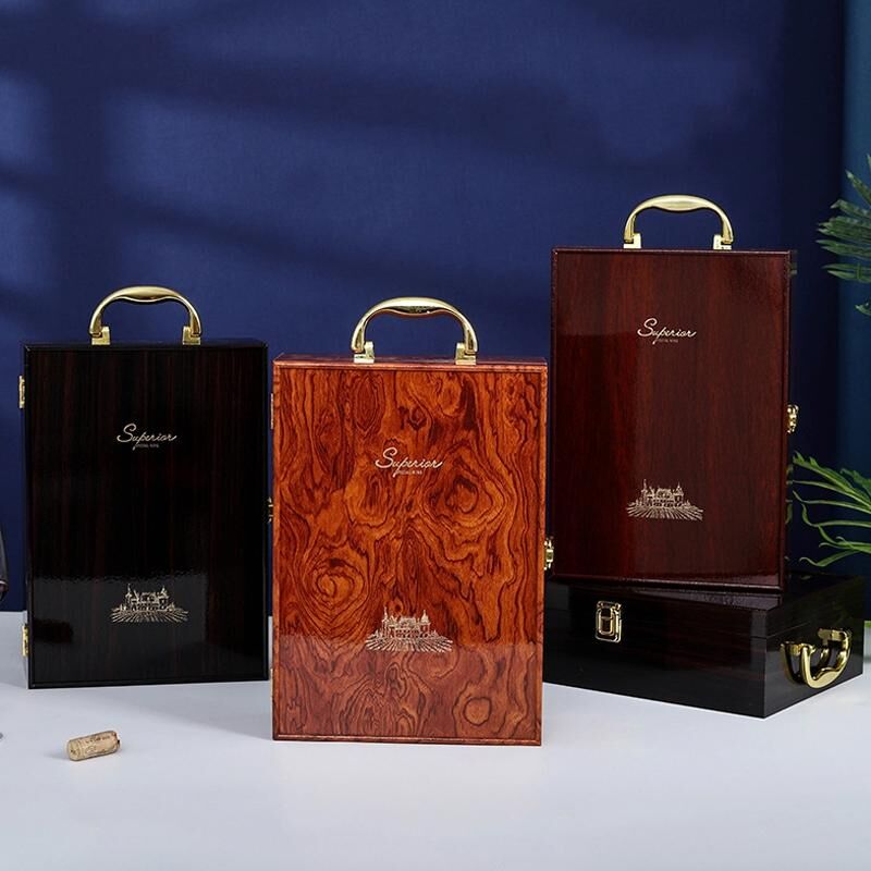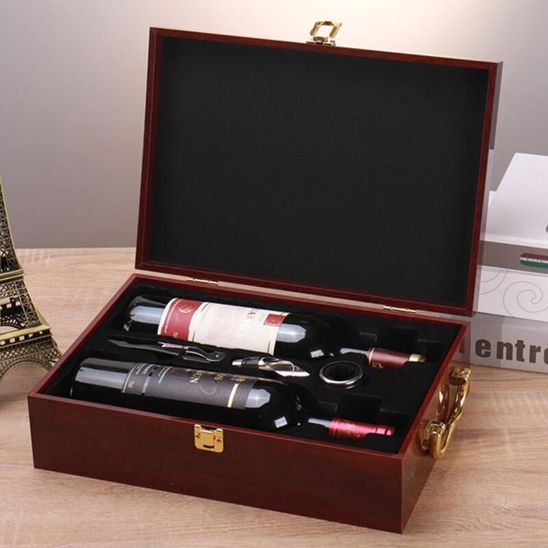 Διπλό φινίρισμα πιάνου κόκκινο κουτί κρασιού ξύλινη θήκη συσκευασίας κουτί δώρου κρασιού με εργαλεία (Ebony)