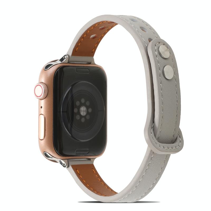 Λουρί Ρολογιού Δερμάτινο με Διπλά Καρφιά για Apple Watch Ultra 49mm & Watch Ultra 2 49mm / Series 9 & 8 & 7 45mm / SE 3 & SE 2 & 6 & SE & 5 & 4 44mm / 3 & 2 & 1 42mm (Γκρι)