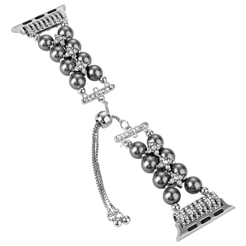 Λουρί ρολογιού με αλυσίδα τηλεσκοπική με διπλή σειρά χάντρες για Apple Watch Series 9&8&7 41mm / SE 3&SE 2&6&SE&5&4 40mm / 3&2&1 38mm (Γκρι)