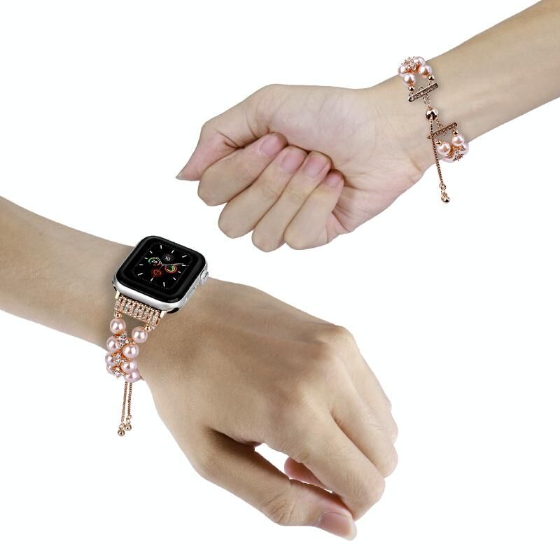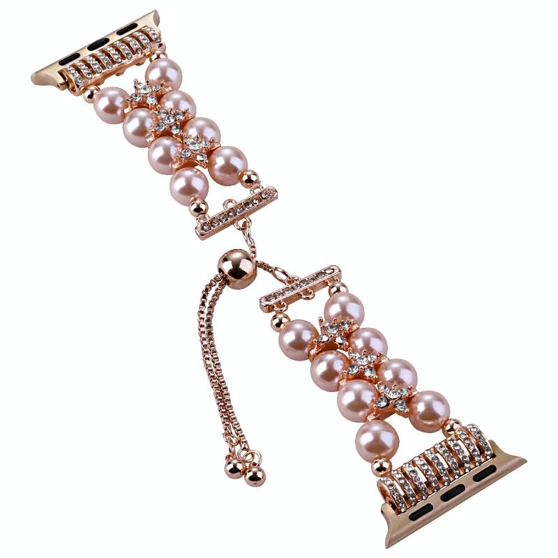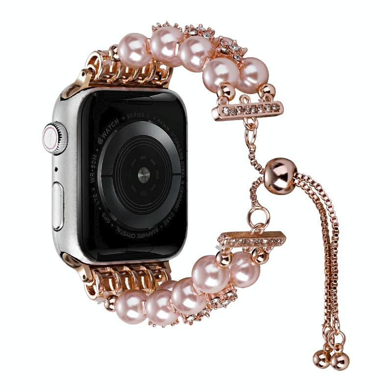 Λουρί ρολογιού με αλυσίδα τηλεσκοπική με διπλή σειρά χάντρες για Apple Watch Series 9&8&7 41mm / SE 3&SE 2&6&SE&5&4 40mm / 3&2&1 38mm (Γκρι)