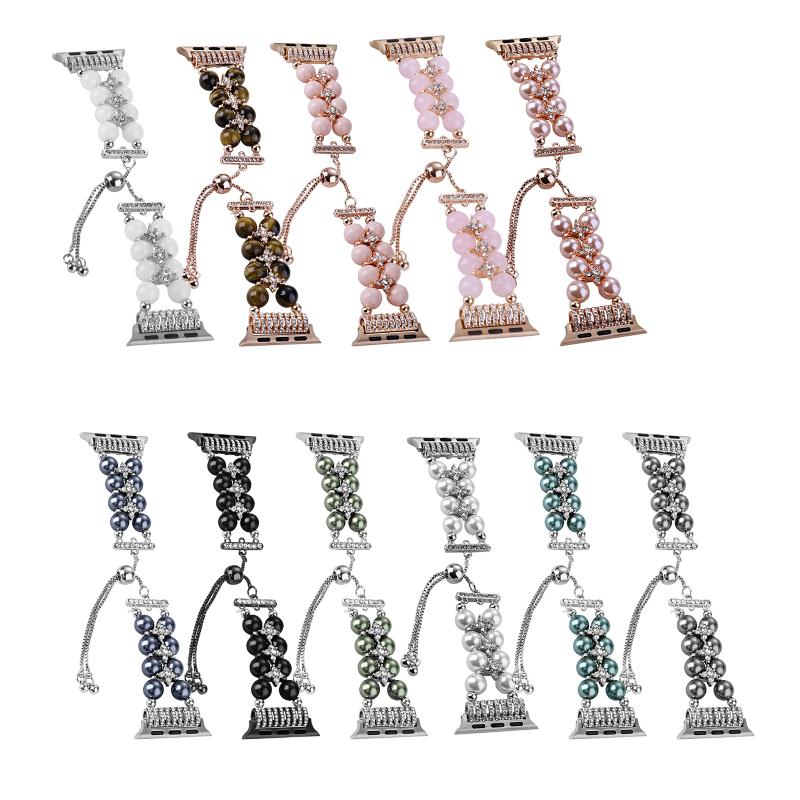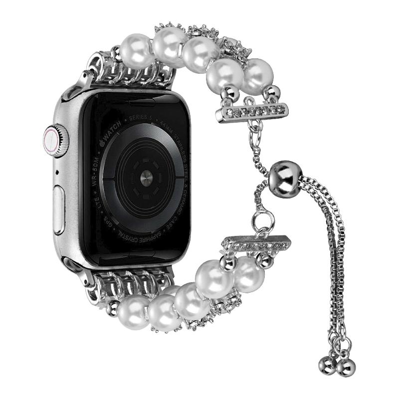 Λουρί ρολογιού με αλυσίδα τηλεσκοπική με διπλή σειρά χάντρες για Apple Watch Series 9&8&7 41mm / SE 3&SE 2&6&SE&5&4 40mm / 3&2&1 38mm (Περλέ λευκό)