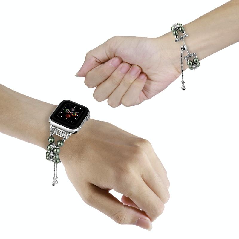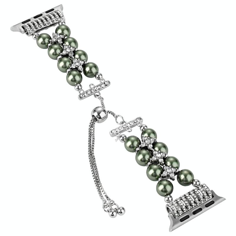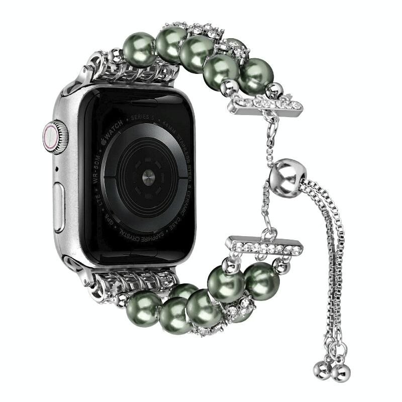 Λουρί για Apple Watch Ultra 49mm & Watch Ultra 2 49mm / Series 9 & 8 & 7 45mm / SE 3 & SE 2 & 6 & SE & 5 & 4 44mm / 3 & 2 & 1 42mm με διπλή σειρά χάντρες και τηλεσκοπική αλυσίδα (Ελαιοπράσινο)