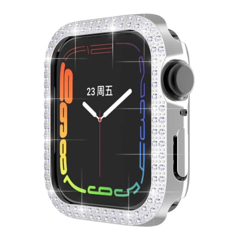 Θήκη για Apple Watch Series 9 / 8 / 7 45mm με Διπλή Σειρά Διαμαντιών PC (Ροζ)