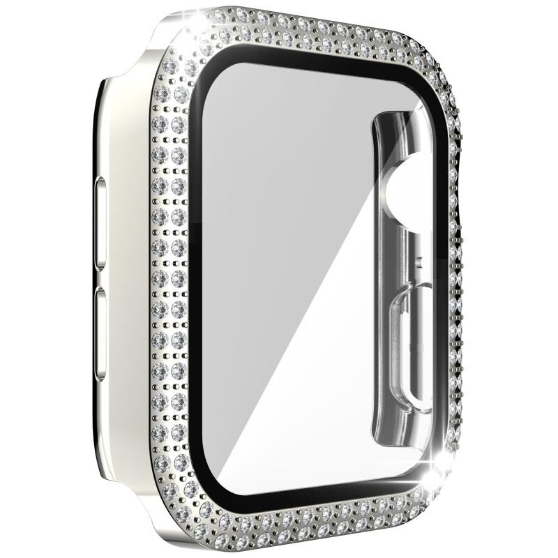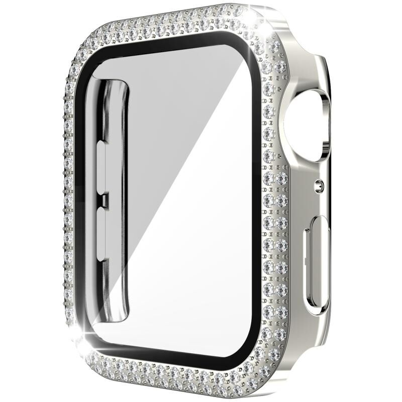 Double-Row Diamond PC+Tempered Glass Watch Case For Apple Watch Series 6&SE&5&4 40mm(Silver)