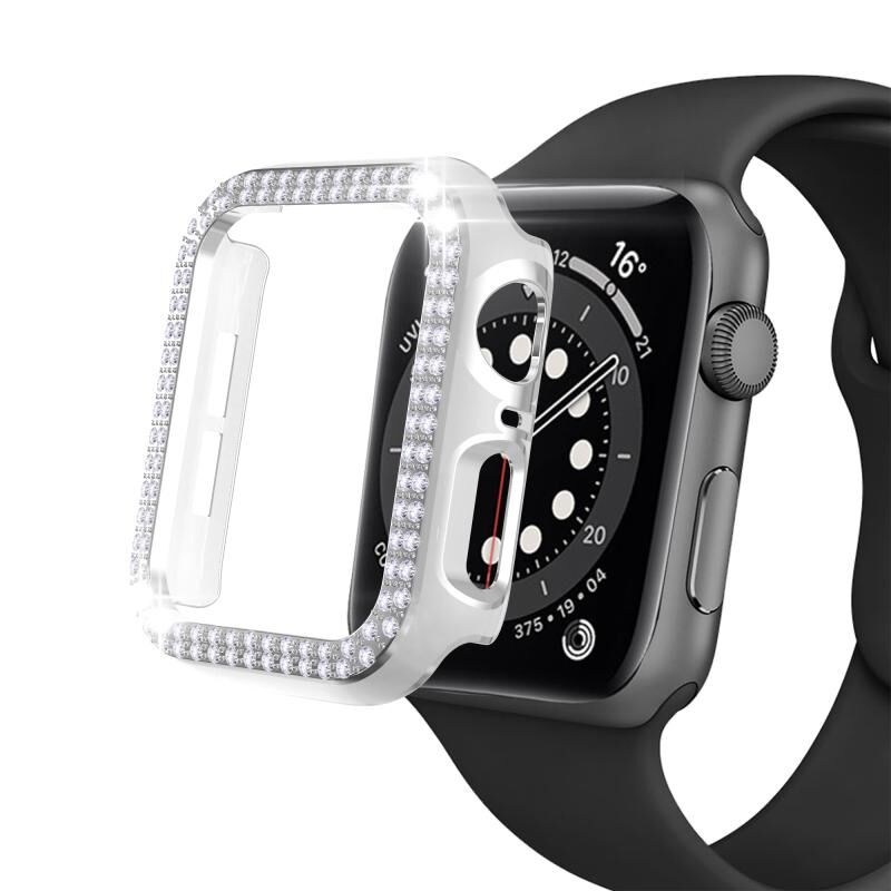 Θήκη για Apple Watch Series 3&2&1 38mm από PC με Διπλή Σειρά Διαμαντιών και Διχρωμία Ηλεκτροεπιμετάλλωσης (Λευκό+Χρυσό)