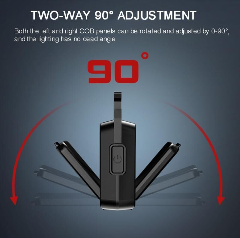 1. Double-sided COB design: left and right two COB panels, all-round high-brightness lighting, two-way folding design, can be used as a flashlight or a camping lamp