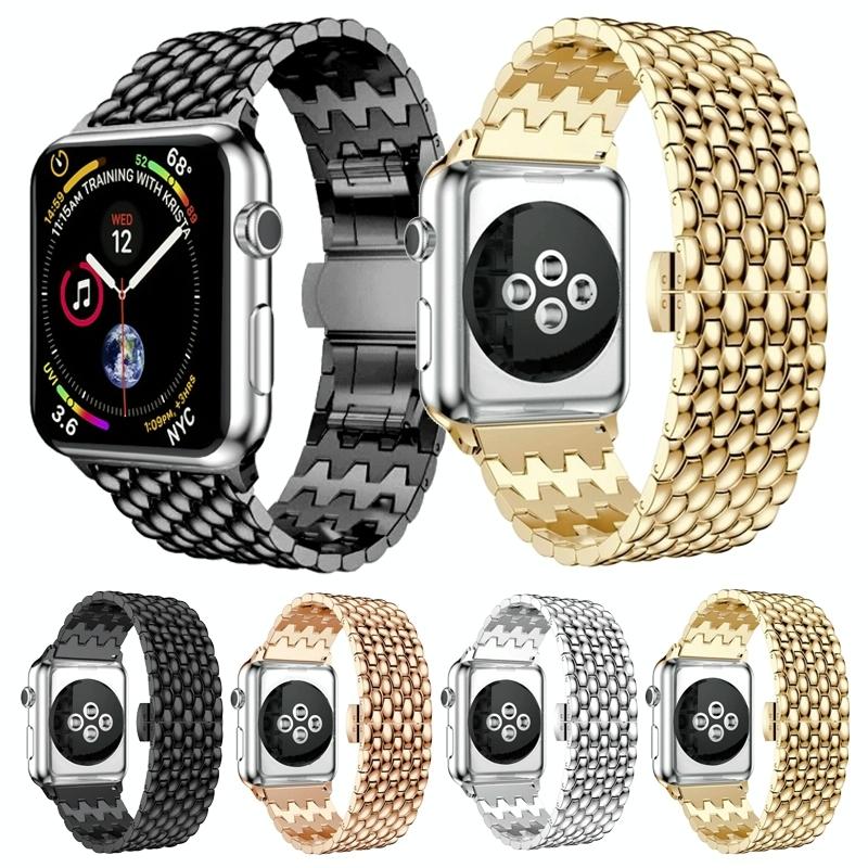 Λουρί Μεταλλικού Ρολογιού Υφής Δέρματος Δράκου για Apple Watch Ultra 49mm & Watch Ultra 2 49mm / Series 9 & 8 & 7 45mm / SE 3 & SE 2 & 6 & SE & 5 & 4 44mm / 3 & 2 & 1 42mm (Χρυσός)