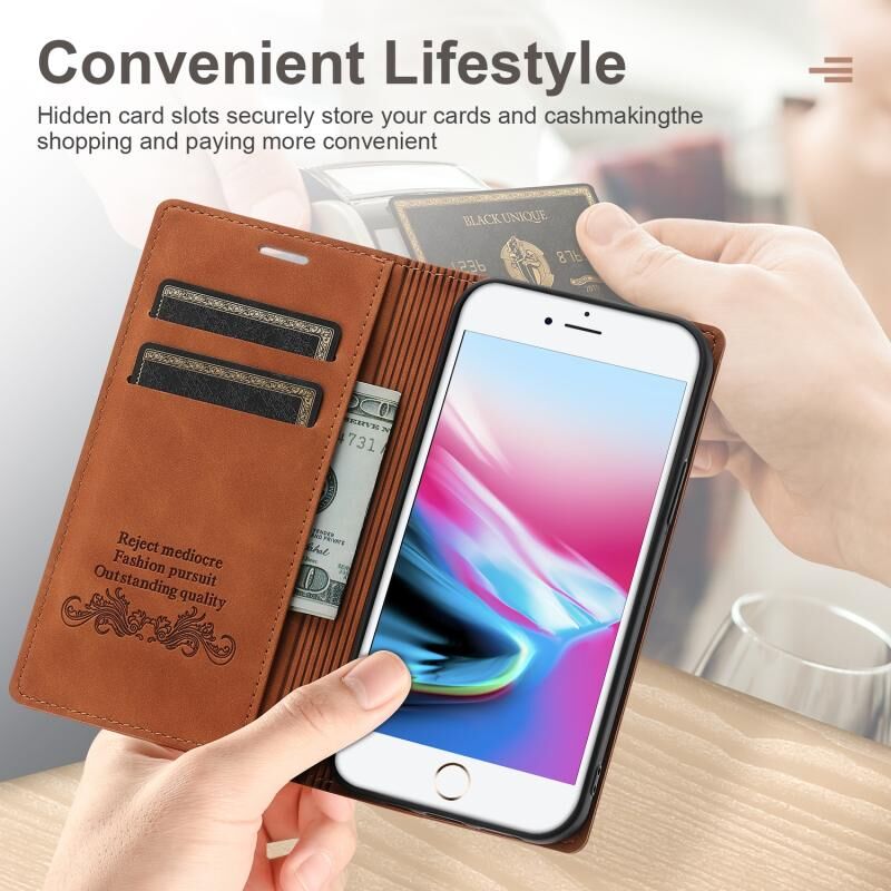 Dream Magnetic Suction Business Horizontal Flip PU Leather Case with Holder & Card Slot & Wallet For iPhone 8 Plus / 7 Plus(Brown)