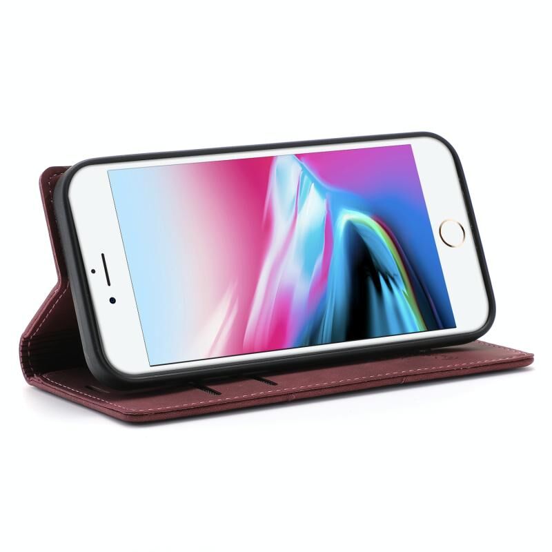 Dream Magnetic Suction Business Horizontal Flip PU Leather Case with Holder & Card Slot & Wallet For iPhone 8 Plus / 7 Plus(Wine Red)