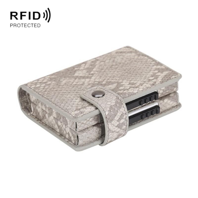 Θήκη Καρτών Διπλής Κάρτας από Κράμα Αλουμινίου, Πορτοφόλι Αντικλεπτικό RFID (Απρίκοτο Ματ από Δέρμα Άγριου Αλόγου)