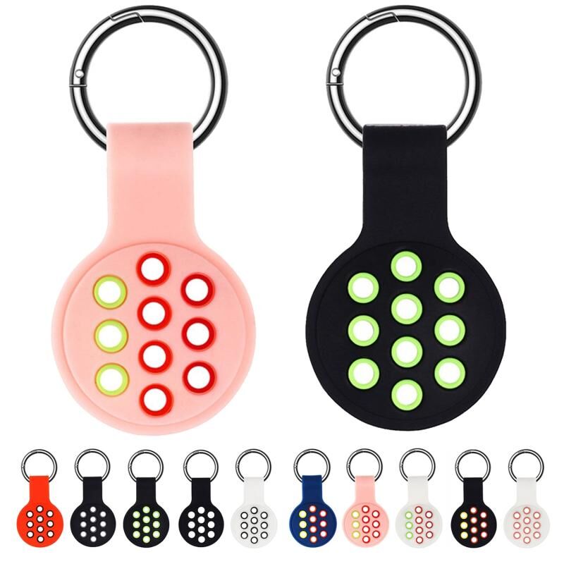 Θήκη Προστατευτικής Σιλικόνης Διπλής Χρωματικής Απόχρωσης με Αμορτισμό και Λουρί Γάντζου για AirTag (Λευκό Μαύρο)