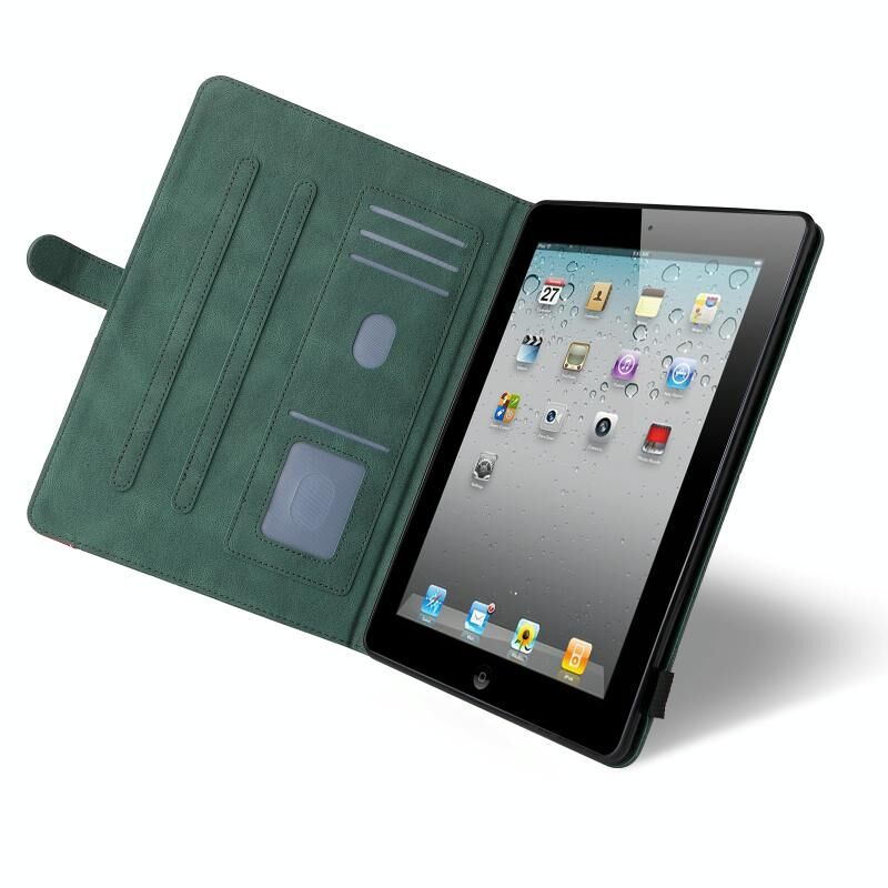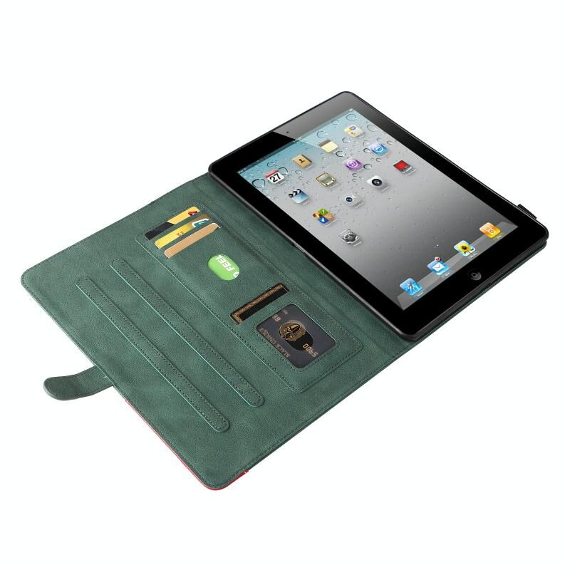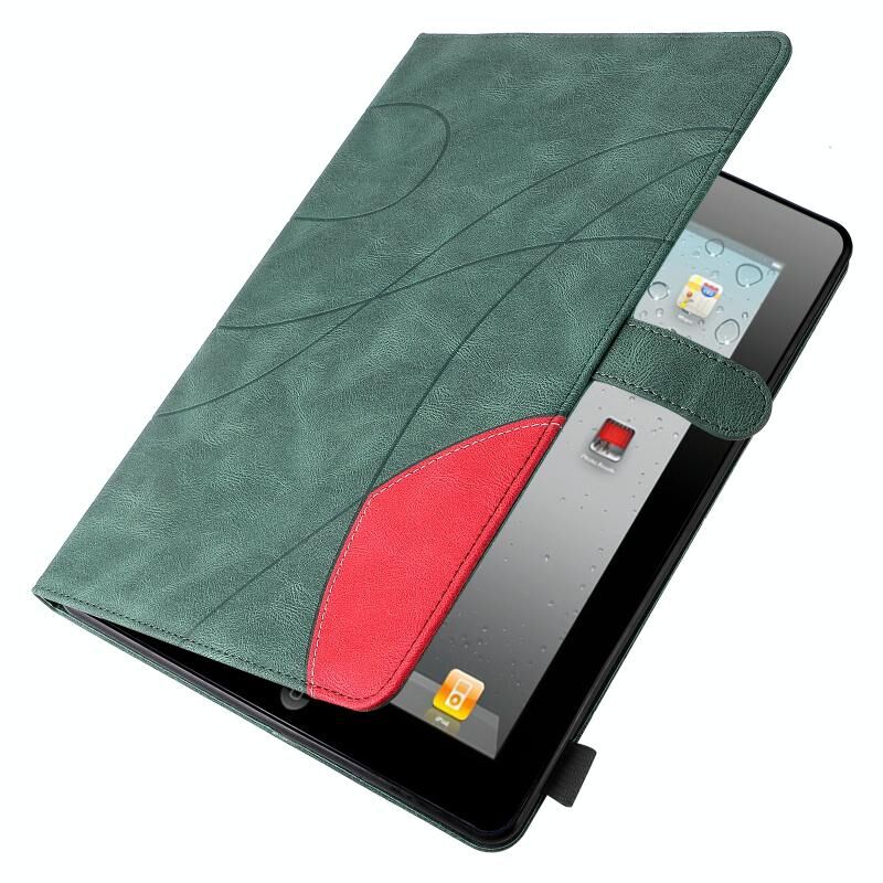 Dual-color Splicing Horizontal Flip PU Leather Case with Holder & Card Slots & Sleep / Wake-up Function For iPad 2 / 3 / 4(Green)