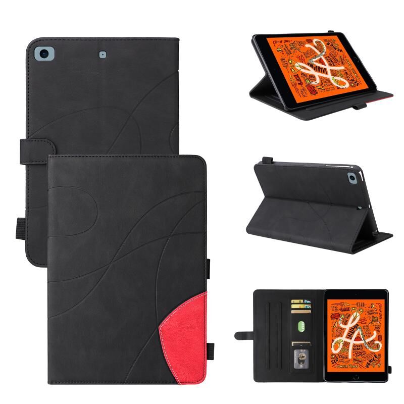 Dual-color Splicing Horizontal Flip PU Leather Case with Holder & Card Slots & Sleep / Wake-up Function For iPad mini/mini 2/mini 3/mini 4/mini(2019)(Black)
